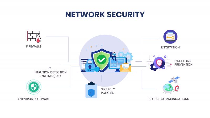 Network security is the practice of protecting computer networks from unauthorized access, misuse, or theft. It involves implementing technologies, policies, and procedures to safeguard data and ensure the confidentiality, integrity, and availability of information. Key elements include firewalls, encryption, intrusion detection systems, and secure access controls.